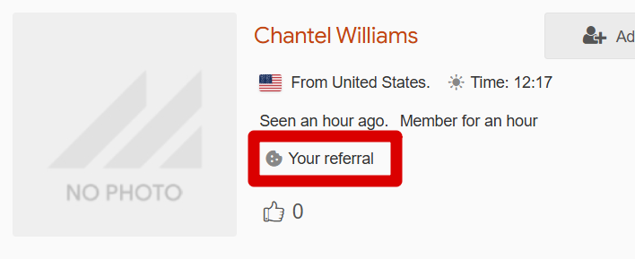 And vice versa: if your referrals visit your profile, they will see that you are their referrer. This is an additional check to ensure you are using your affiliate links correctly.