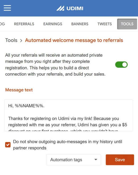 To simplify this process, we have developed a tool that sends automatic messages from you to your referrals.