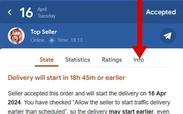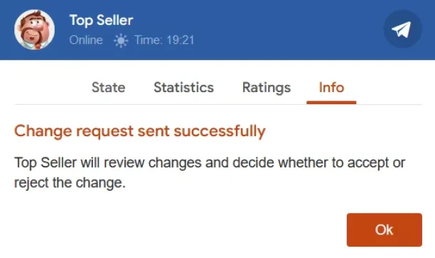 Step 5. Your seller will receive your link change request and react to it. Please note that the seller can accept, reject or even ignore the request.