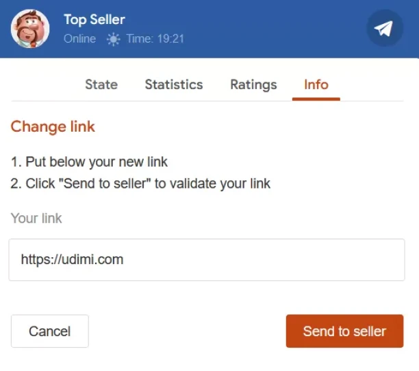 Step 4. Put in your new link and click Send to seller button