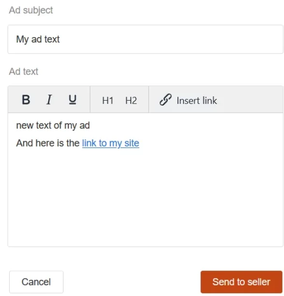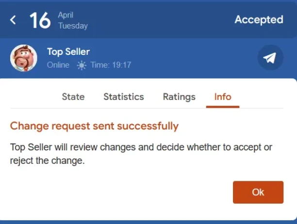 Step 5. Your seller will receive your ad text change request and react to it. Please note that the seller can accept, reject or even ignore the request.