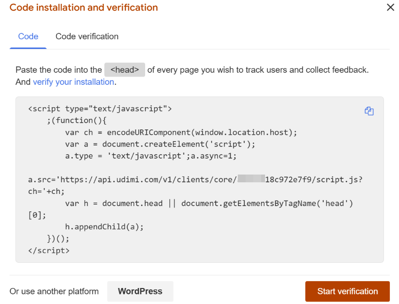 Now we have to go through all the pages of your funnel to make sure the setup is correct. If you have installed the code on your site, just click Start verification. If not, then install Udimi tracking first.