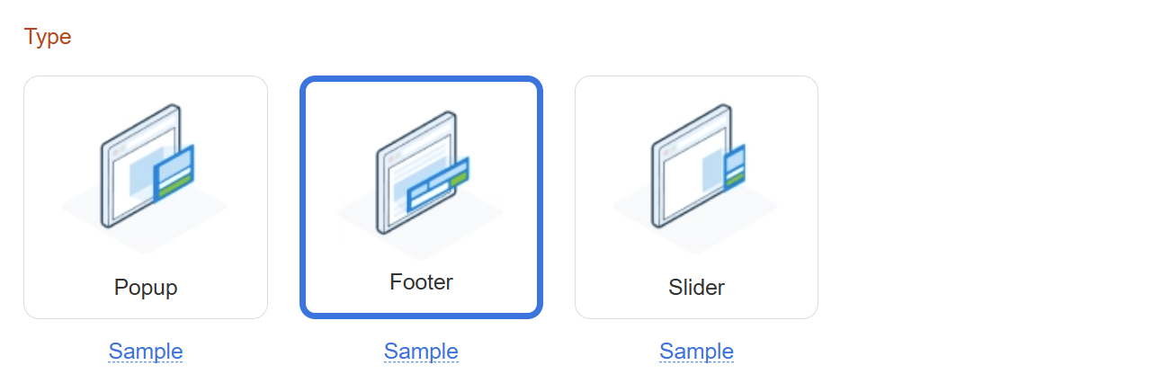 1. Popup: An unblockable, layer-based popup will appear at the top of your content, based on the conditions you select in the Triggers section.