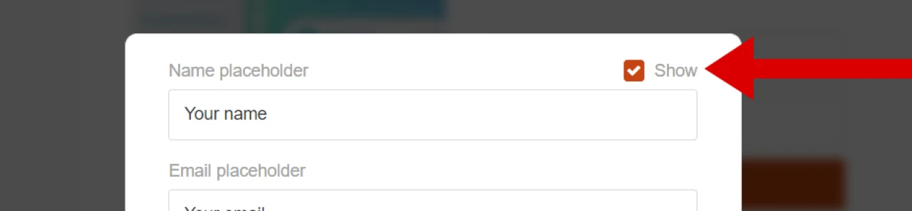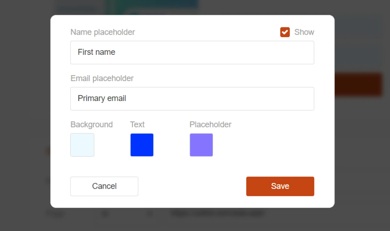 Name / Email Placeholder - This is the text displayed in the input box when the user hasn't entered any information yet.