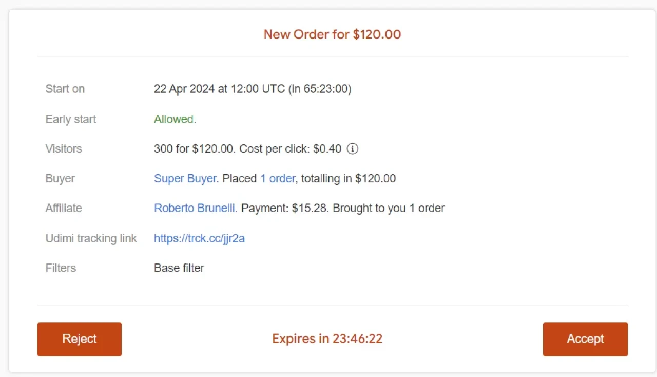 When you receive a new order, you will receive a notification by email and via the Udimi app. It will also appear on the Orders screen.