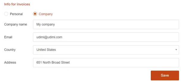 First, please provide the information about yourself or your company that you wish to include on your invoices.