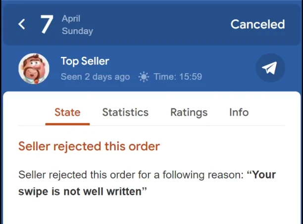 If a seller has rejected an order, there was a serious reason for it, as no one likes losing orders.