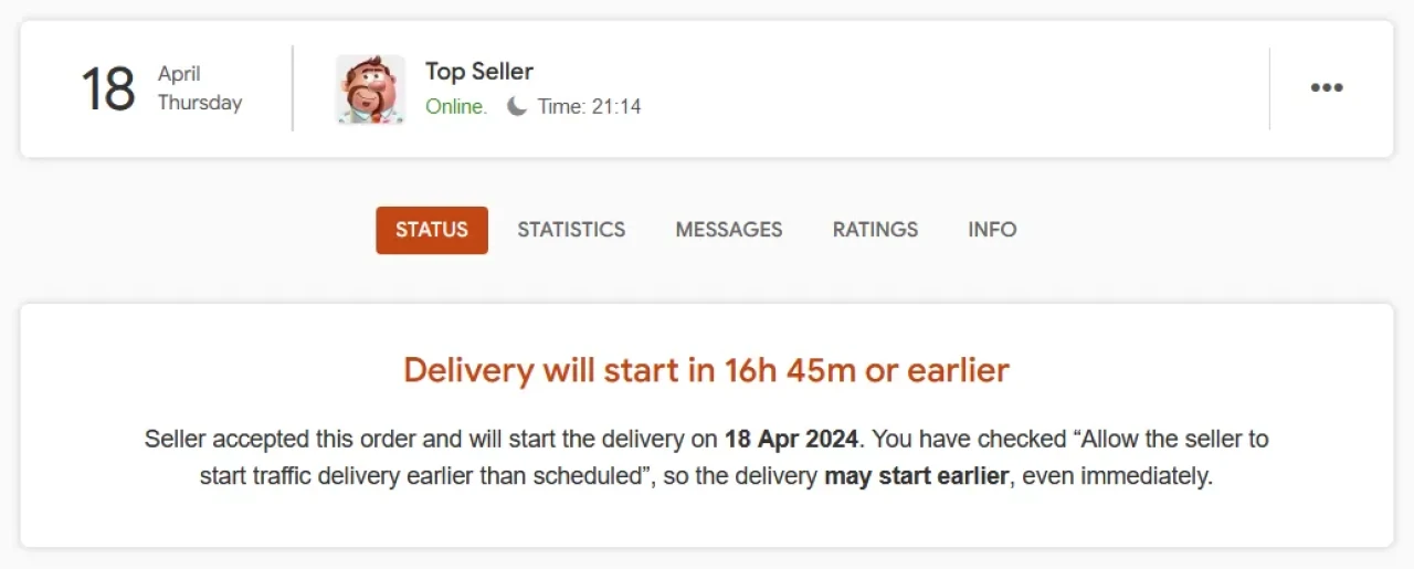 You will see your traffic begin to flow in real-time; you can even keep this page open to watch it live. Your seller has 100 hours to deliver 100% of your traffic. If they fail to deliver in full, a corresponding credit will be automatically returned to your account