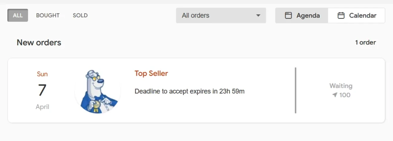 After placing an order, your seller has 24 hours to decide whether to accept or reject it.