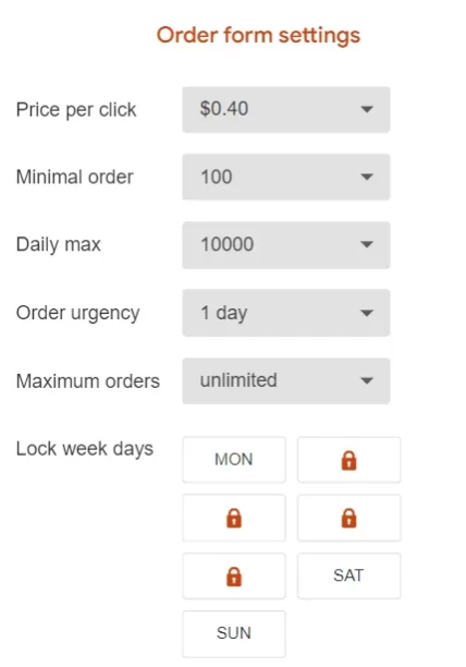 Minimal order – the minimum quantity of clicks you wish to sell.