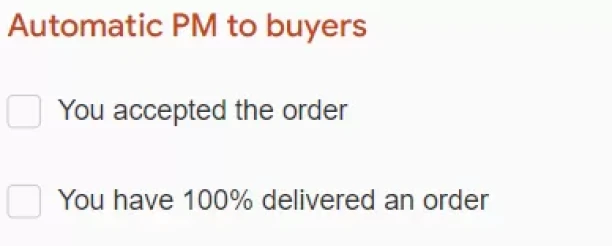 Return back to Settings > Seller setup and set up automatic messages that will be sent to your customers after you accept a new order and complete its delivery.