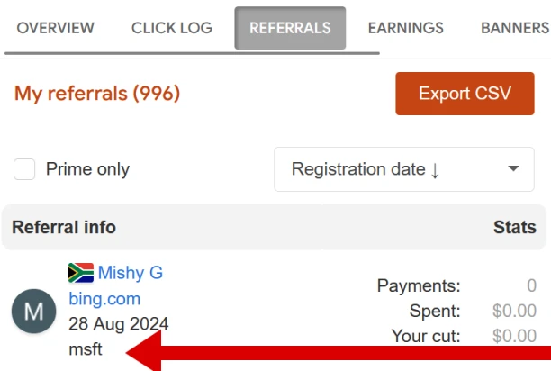 After your referral registers, a special identifier will be recorded in their account. You can see this ID right in the My Referrals section of the Affiliates area.