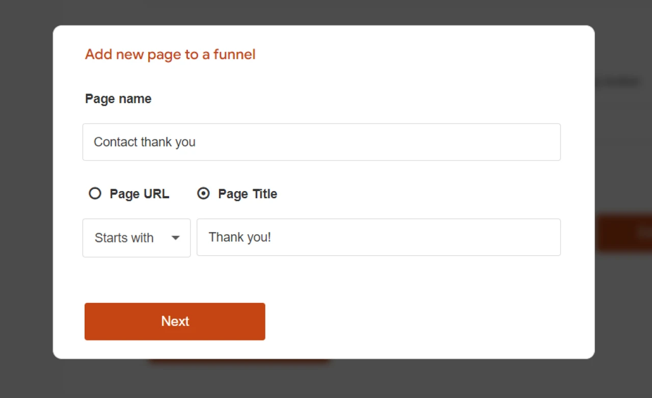 You can also use page title matching. This way, the system will look for the page's meta "Title" tag. In this case, you have to input the page's title, not the URL. The matching options work exactly the same as they do with URL matching.